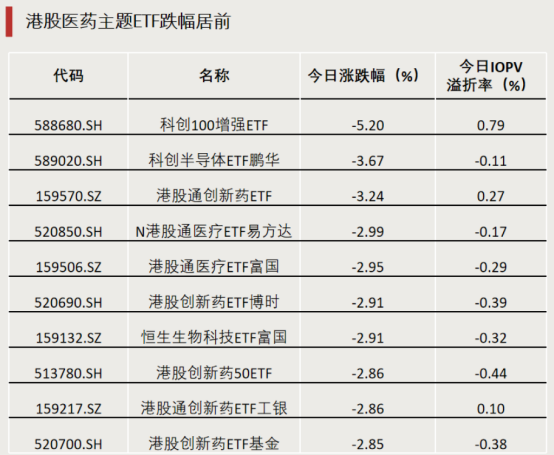 今日,多只港股医药主题ETF跌幅居前。
