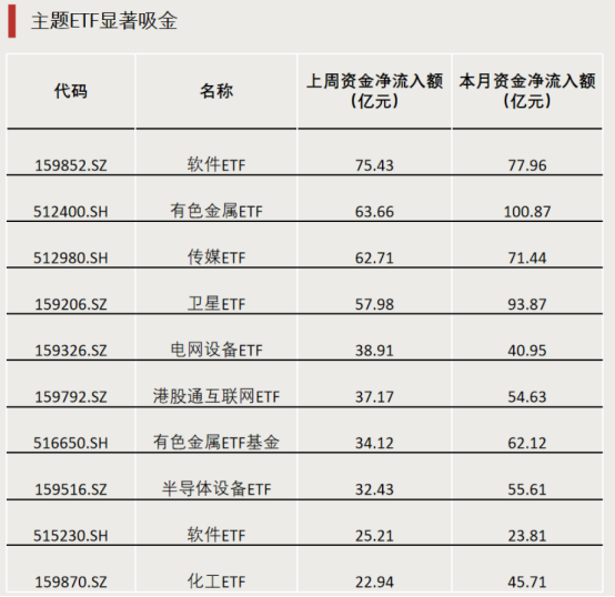 上周,软件、有色、传媒、卫星等主题ETF吸金,多只宽基ETF则遭遇资金净流出。1月以来,全市场ETF整体呈现资金净流出态势,净流出额超2000亿元。